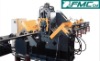 Since there are higher tension power transmission towers with large span and stronger loading capacity required to be built around the mountains, villages, some atrocious conditions area, also Steel angles with thickness larger than 20mm are gradually forbidden for punched by most Countries'Standard, FMC designed such Drilling & Marking system---TAL2532 for our clients. The machine is fitted with multi-spindle drilling system, marking unit, CNC carriage feeder, auto loading & unloading system. TAL2532's max. processing capacity is up to 250 x 250 x 32mm. FMC provide BBSW series Band Sawing Machine to combine with TAL2532 to be an integrated marking,drilling and cutting line. FMC designed specialized software for TAL2532, which can read AutoCAD(*.dxf drawings) andTekla(X-Steel: *.dstv) directly with batch processing capacity, also support manual (increasement) input. The machine operator just need to load all steel angles required for processing on the cross conveyor, and the machine which is pre-programmedwould select aimed angles for processing. ModelTAL2532Operating RangeMin. Size of Angle 140 x 140 x 10 mm Max. Size of Angle 250 x 250 x 32 mm Max. Length of Angle 12,000 mm Drilling UnitThe drilling heads on each side 3 pieces Spindle rotation speed 180 560rpm Drilling Dia. φ17.5 φ40 Stadia Adjustment 50 220mm (stepless speed adjusted) Marking UnitCapacity SC: 540 kN or BC: 1030 kN Character Dimension / Depth 14 x 10 x 1mm Control SystemType Computer + Mitsubishi PLC + Modules Importing Software CAD-DXF, DSTV Material Handling SystemMax.Feeding Speed 40m/min Machine Overall DimensionDimension (L x W x H) 29000 x 8900 x 2500 mm